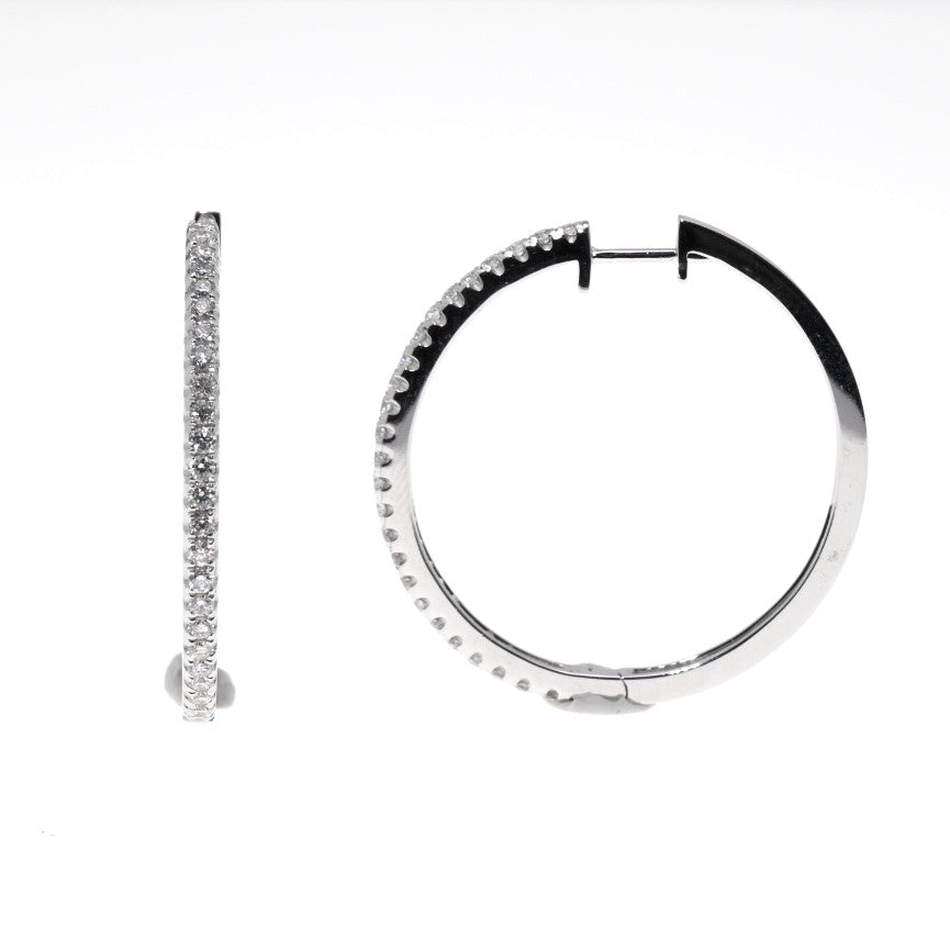 Earrings in 18K white gold with round brilliant diamonds. G colour with VS to SI clarity. Width of 1.8 mm. Total of 0.60 ccarats.
